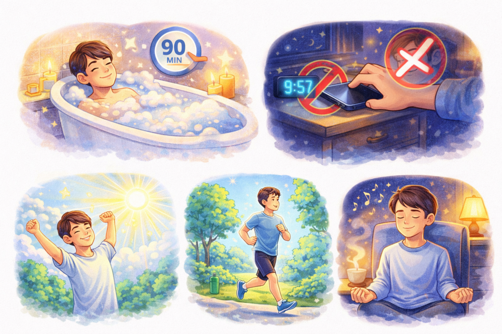 これらを意識するだけで、睡眠の質は大きく変わります。