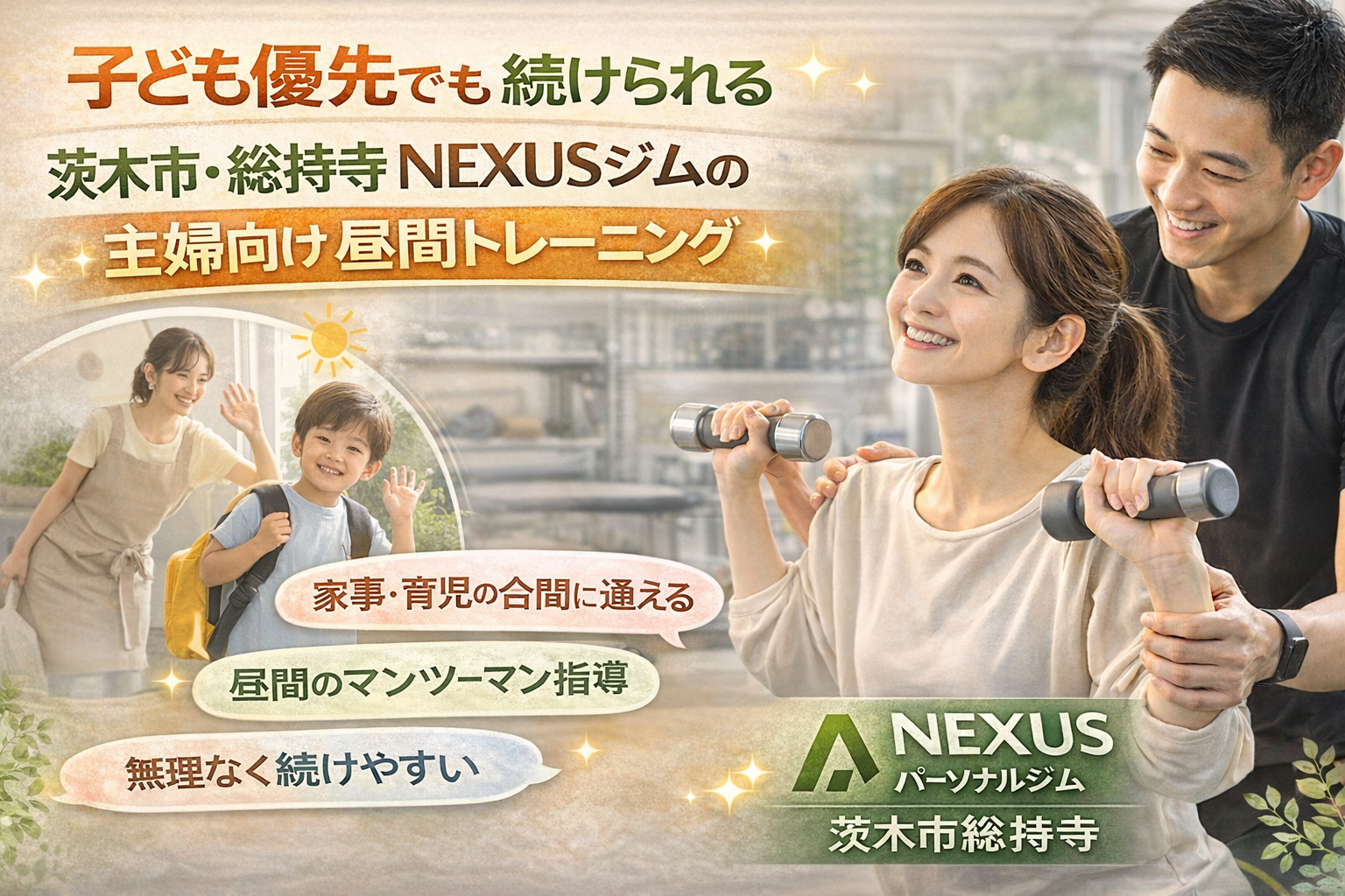 子ども優先でも続けられる|茨木市・総持寺NEXUSジムの主婦向け昼間トレーニング