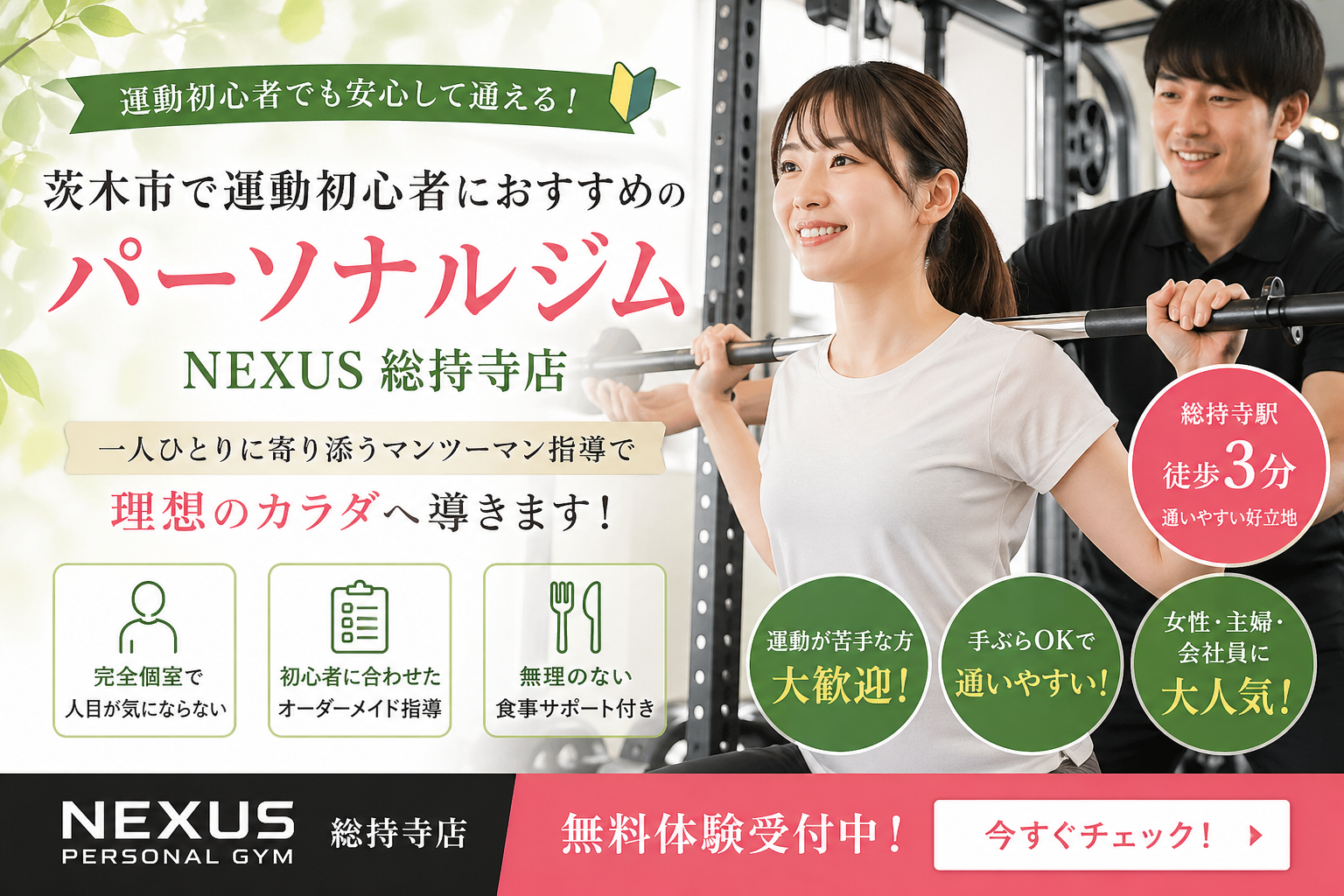 茨木市で運動初心者に人気のパーソナルジムならNEXUS総持寺店|失敗しないジム選び完全ガイド