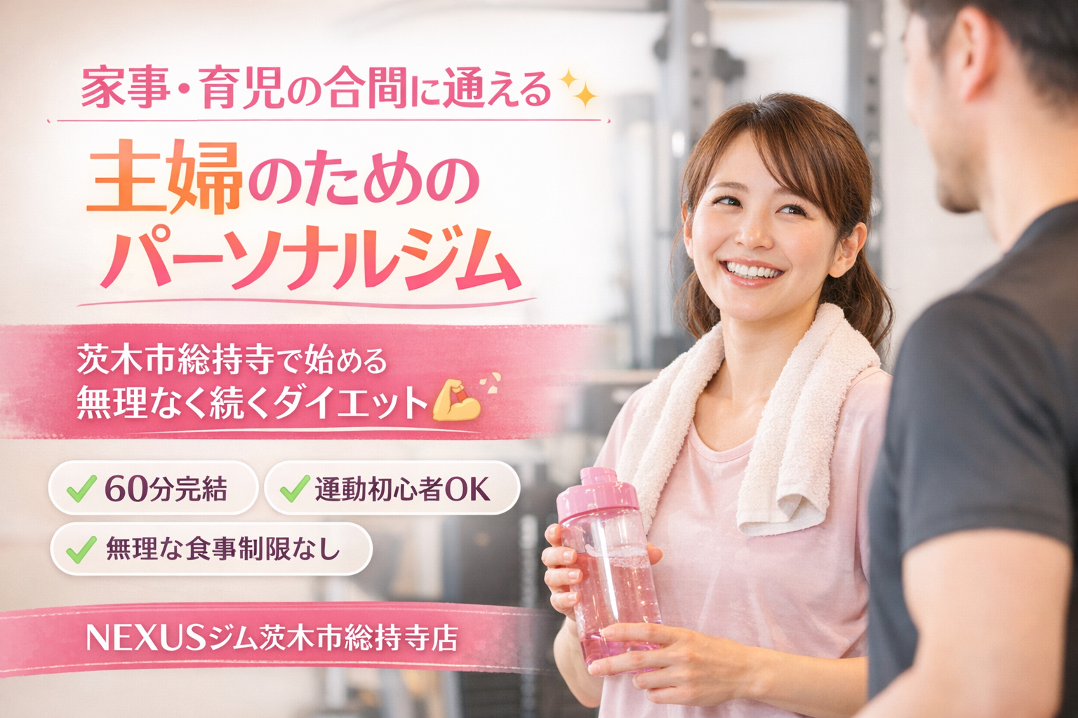 茨木市総持寺で家事・育児の合間に通える主婦向けパーソナルジム|NEXUSで無理なくダイエット成功
